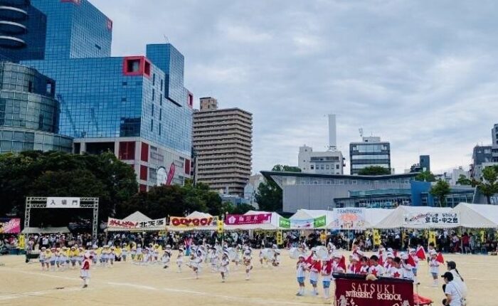 2025/10/19 扇町公園で行われた北区民カーニバルに鼓笛隊で年長児、年中児が出演しました。
